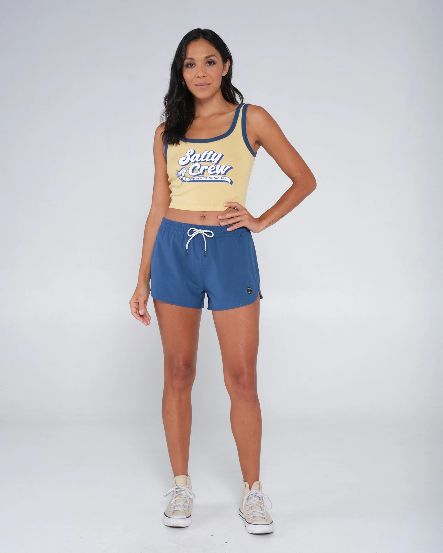Salty Crew patch at front hem and back pocket