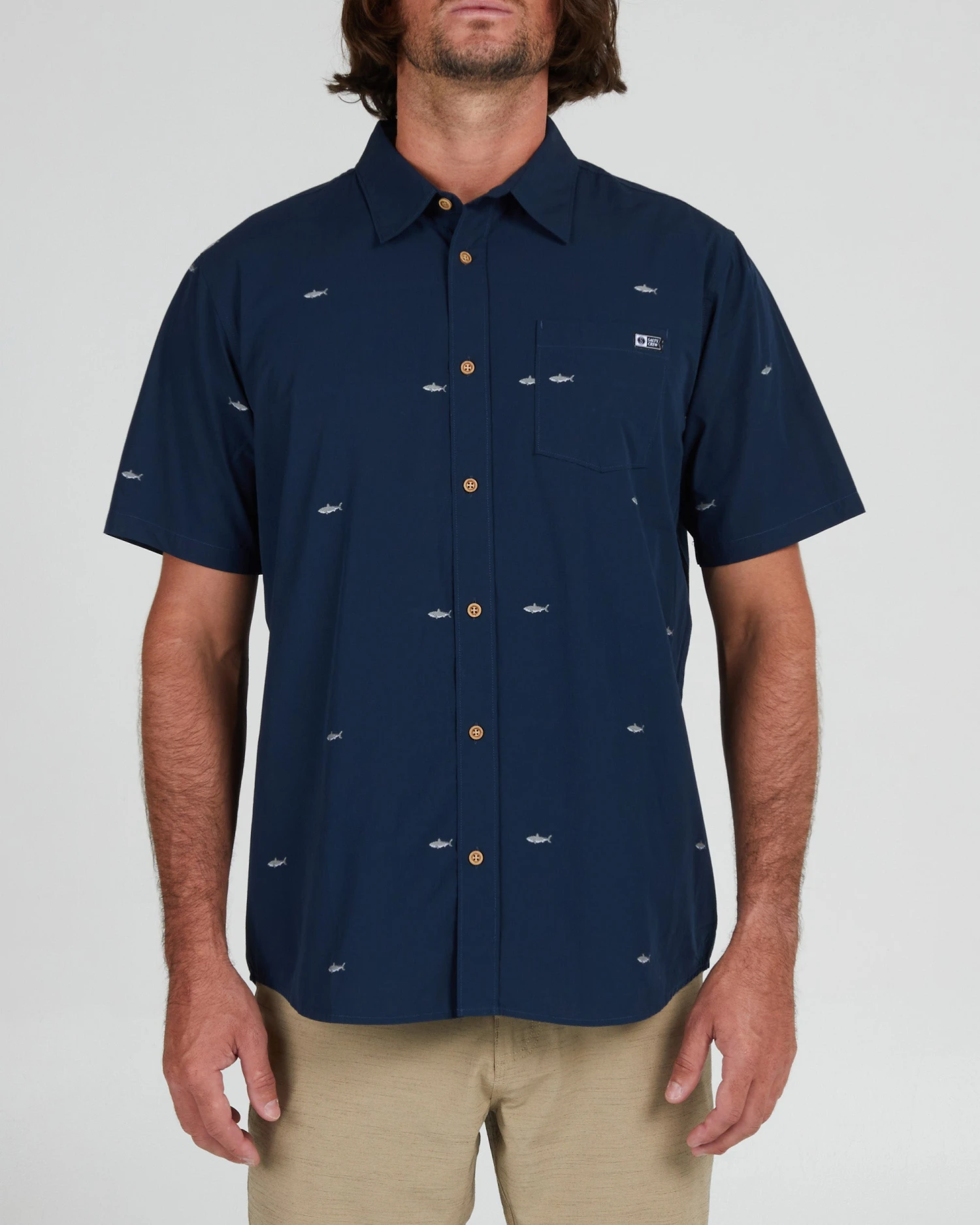 Left chest pocket with Salty Crew label