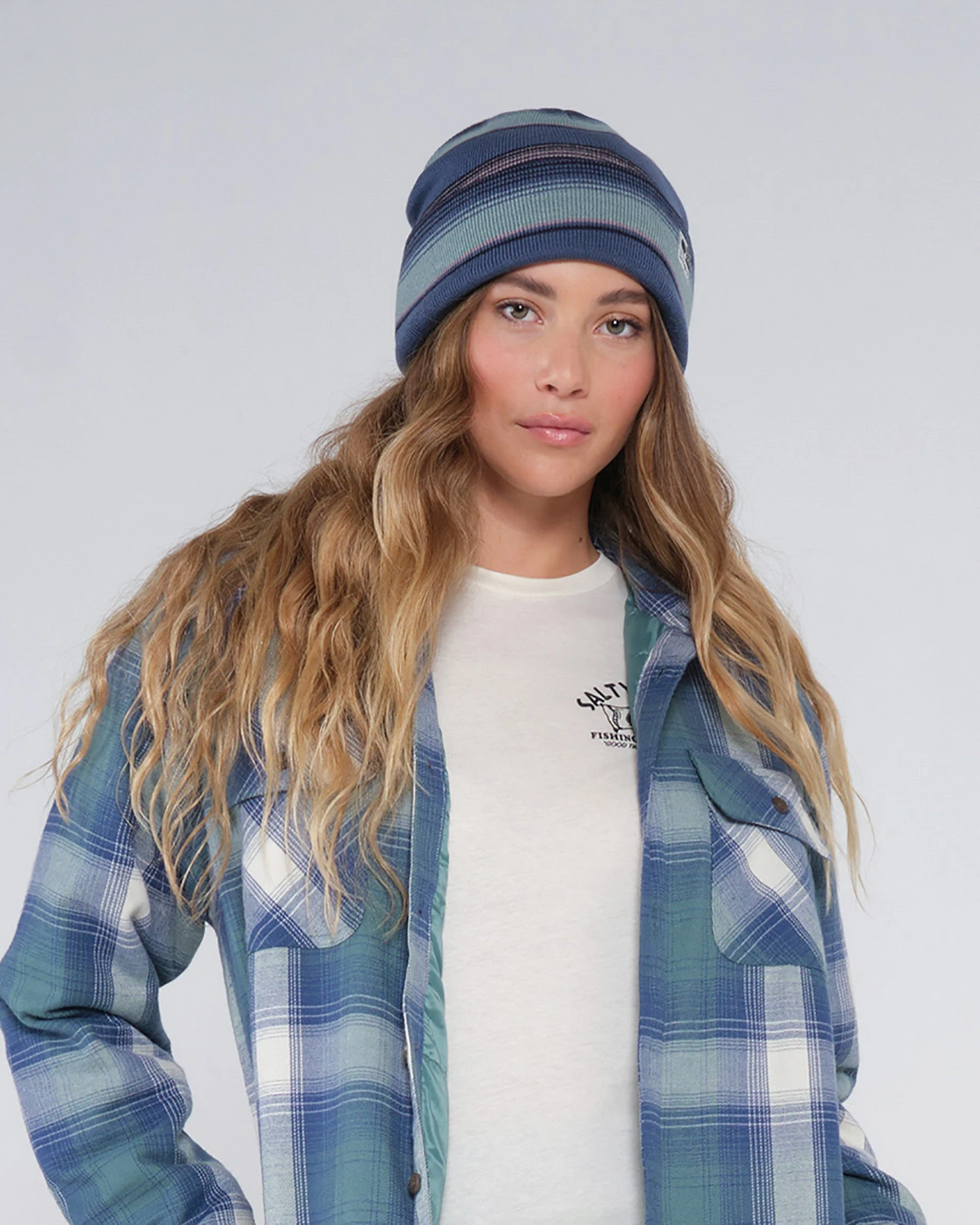 Stripe beanie with turn back cuff