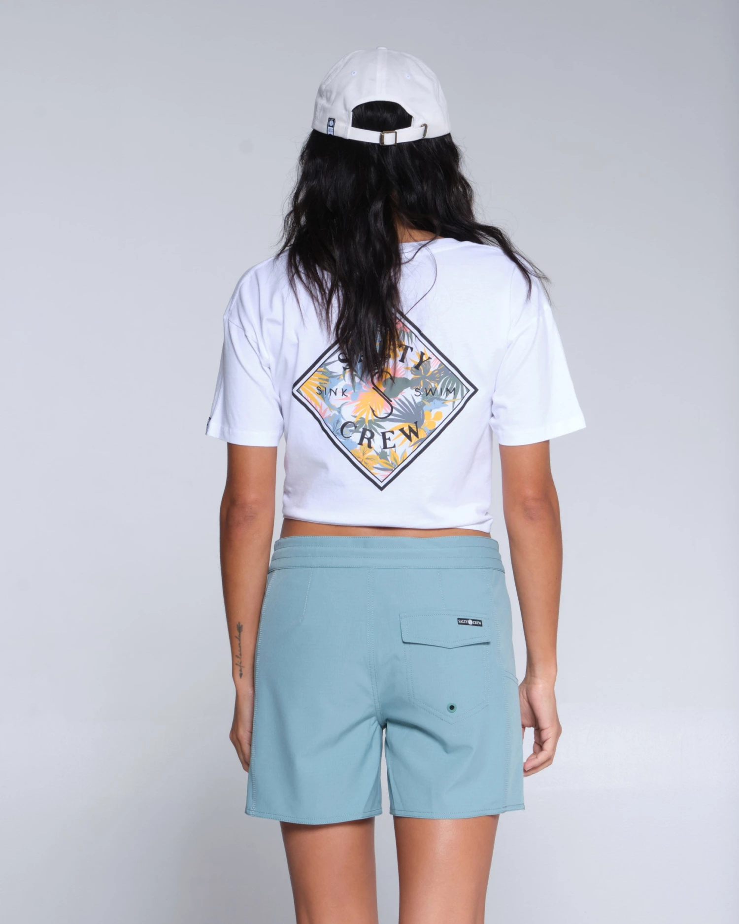 Salty Crew label at front hem and back pocket flap