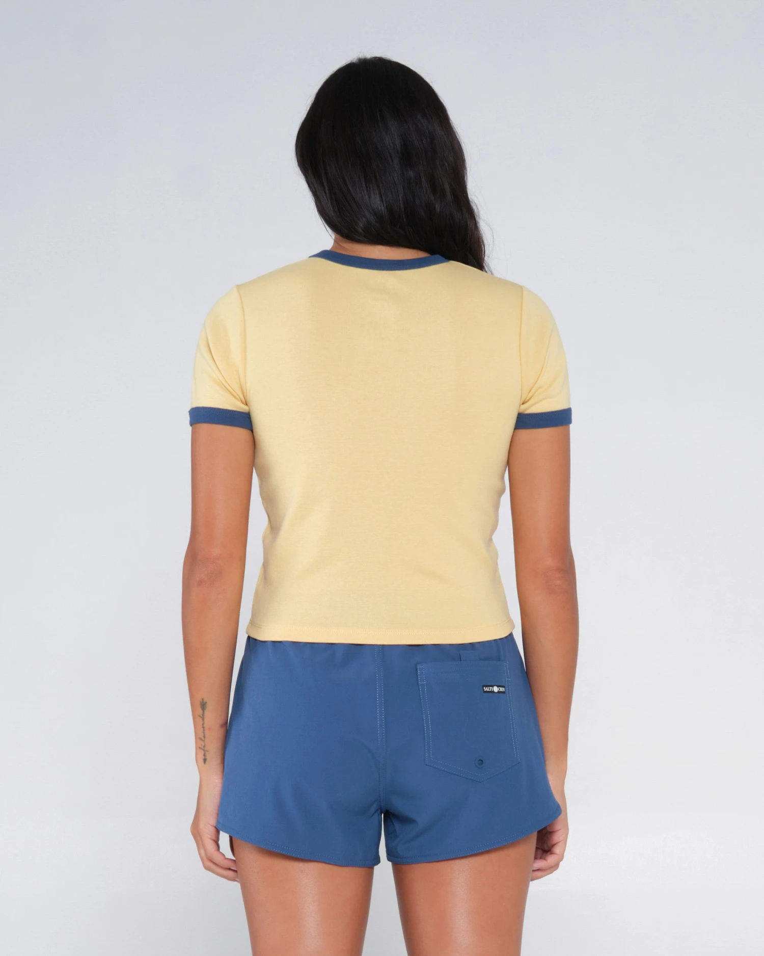 Salty Crew clamp label at hem