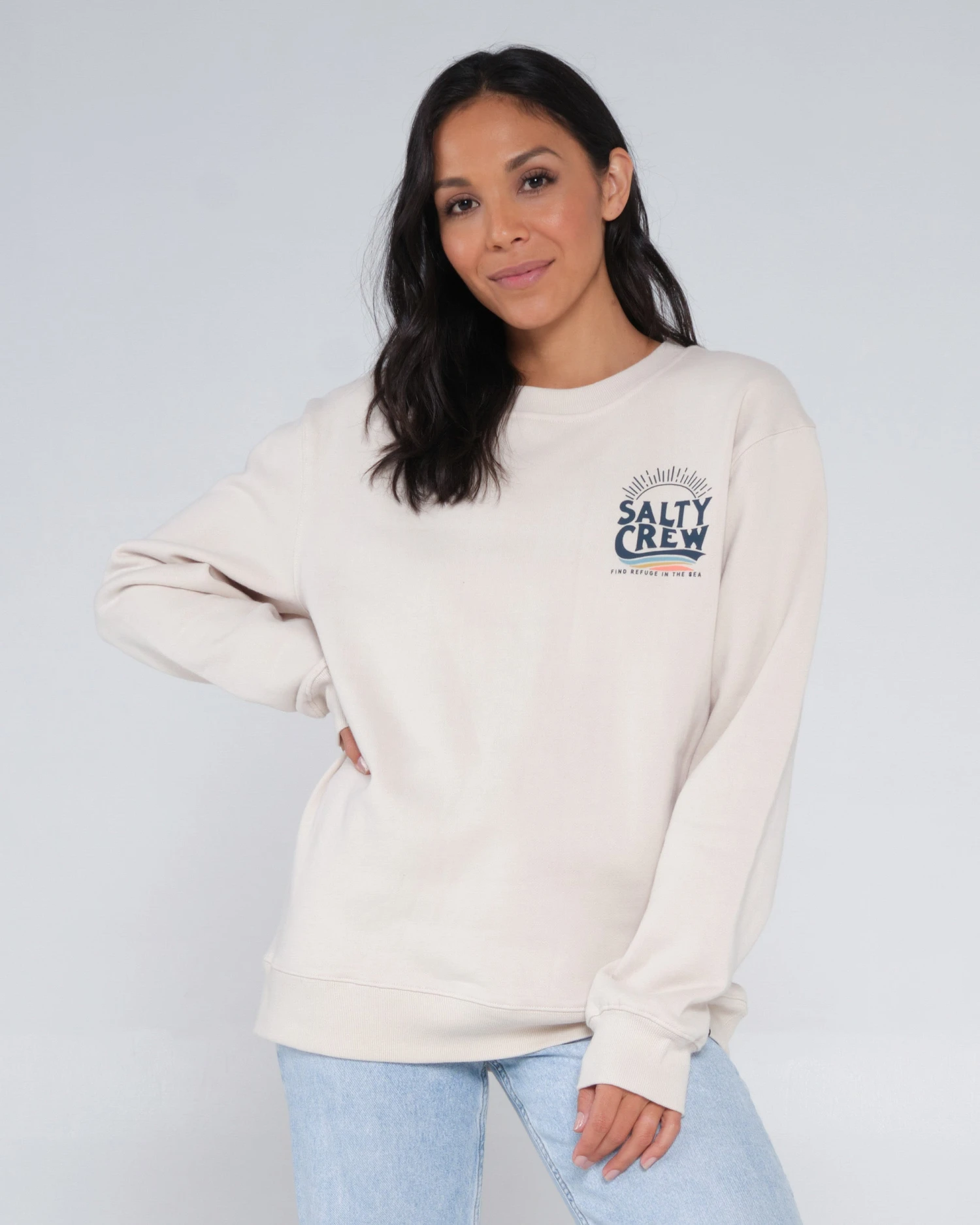 Salty Crew clamp label at hem